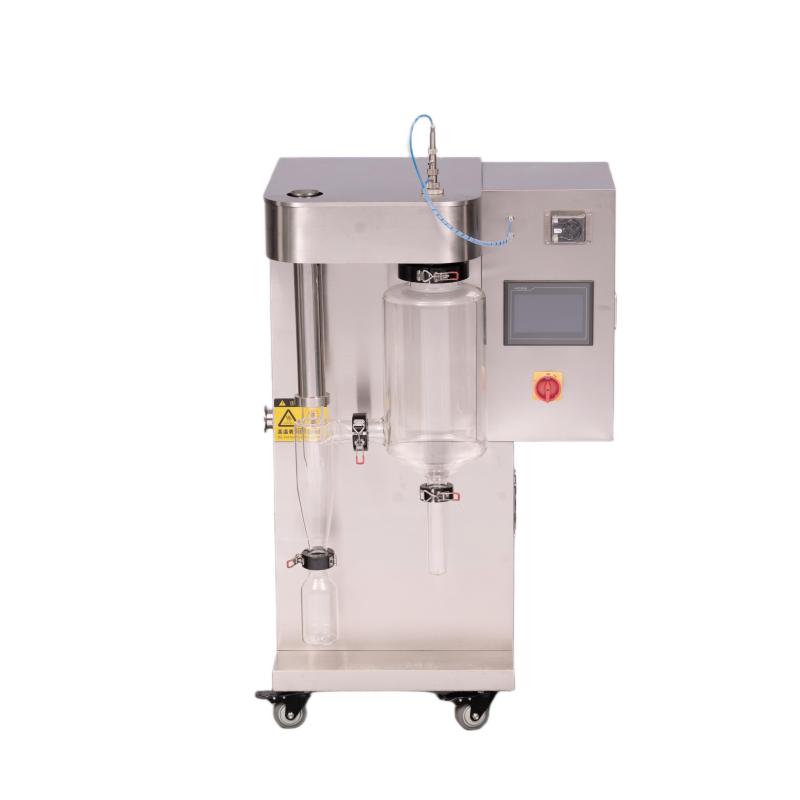 ●实验室小型喷雾干燥机内置全无油空压机,空压机配备不锈钢储气罐,喷粉的颗径呈正态分布,流动性好,且噪音非常低,符合国家实验室噪音标准;